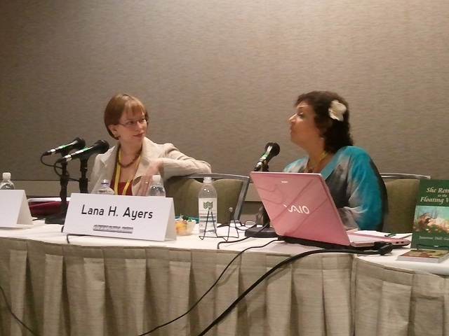 ““Monster Brides, Robots, Superheroines, and Anime Girls: Geek Girl Poets!” was devoted entirely to geek-themed poetry. Jeannine Hall Gailey, author of She Returns to the Floating World (Kitsune Books) and Becoming the Villainess (Steel Toe Books), and Lana H. Ayers, author of A New Red (Pecan Grove Press), read some of their own poems, as well as poems from other women about female characters in pop-culture. It was a funny, inspiring panel and a good way to start the second day of the conference.”