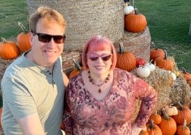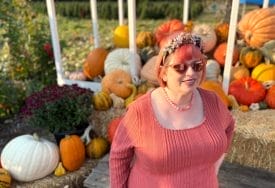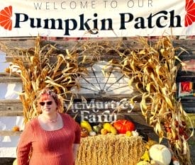 - Posing with pumpkins and hay bales at JB’s Pumpkin Farm