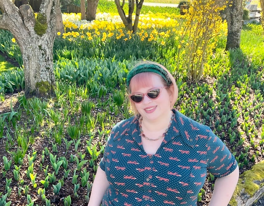 After lunch, we decided to drive up to La Conner to see the daffodil fields and see if we’d see any snow geese (the answer was yes—and we were circled by three bald eagles which we sadly didn’t catch on film). The daffodil fields and hyacinths in particular smelled as lovely as they looked. It was beautiful, everyone was friendly, and it was actually a faster trip—up and back—than just getting home had taken us yesterday. When we got home, we made Irish stew and watched our traditional St. Patrick’s Day movie, Secret of Kells. And yes, that is a green dress with tiny foxes on it.