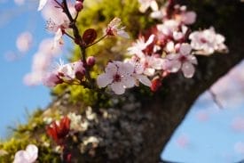 I wish I had been up for celebration, but I’ve been sick all week and injured my shoulder, plus my dad was back in the hospital for pneumonia. This picture on the left with our neighboring cherry tree was the last one I took before I got sick. Sadly, I haven’t been out exploring for new blooms, I’ve been stuck inside, stressed—and starting with a new physical therapist for spine issues.
