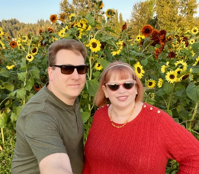 - Glenn and I with sunflowers at JB Growers Pumpkin Farm and Sunflower Maze