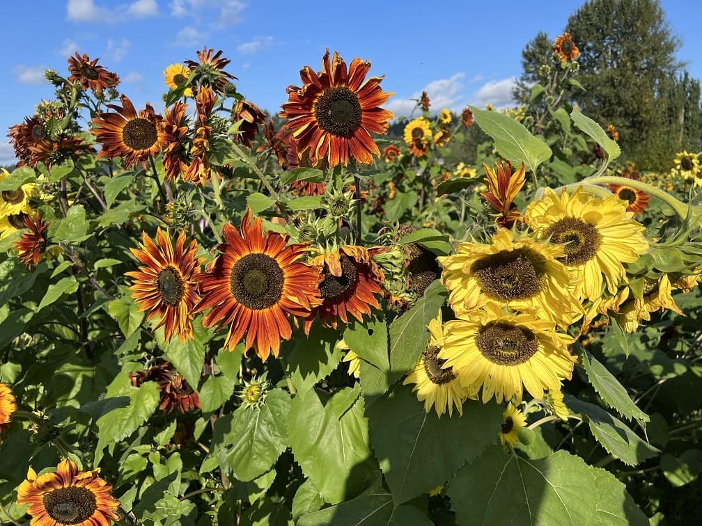 We also enjoyed “magic hour” at the JB Family Grower’s Flower Farm, where the lavender was mostly done blooming, but the sunflowers, zinnias, and dahlias were still putting on a great show. In two weeks, the farm transforms to a corn maze and pumpkin farm, so we’ll probably spend the remaining nice fall days hanging out there. Do we still want to make it to visit the red pandas at Woodland Park Zoo, see the art at Roq la Rue, and see La Conner as it turns to fall? Yes! But maybe we shouldn’t have expected to do it all in three days. Serendipity made each trip we made downtown unique and enjoyable, despite getting postponed at the hospital infusion center (now set for Monday?) and the traffic. Does the MS affect me in the amount I can do in a day? It does. Was it discouraging and frustrating to navigate the UW medical system between different standards doctors have and the infusion center? Yes. Am I exhausted now? Yes! Did I get much poetry (writing, submitting, writing blurbs) done? Well, I judged one poetry contest, so it wasn’t nothing, but it wasn’t as much as I would have done had it been cold and rainy. But we have plenty of that kind of weather ahead of us!