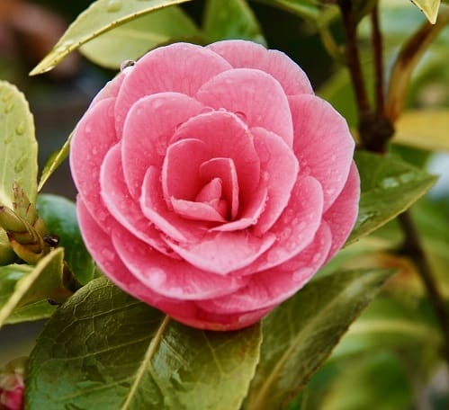 - Coral Camellia bloom
