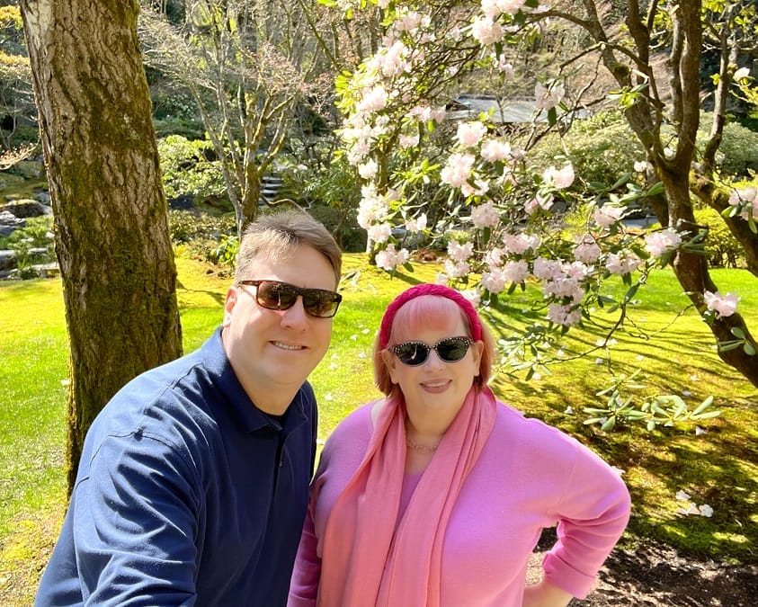 So a few pictures here of Glenn and I posing with various cherry trees, proving that the spring really did come to the Pacific Northwest this week, even if it didn’t feel very springy today or yesterday. Photo evidence!