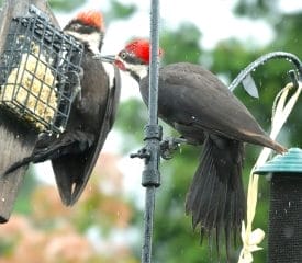 In the coldest and wettest spring (and now, almost summer) we’ve had here in 50 years, it’s been uniquely dispiriting to try to garden. My pink lady apple tree has black mold on its leaves; many of my perennials have died, along with my herbs like rosemary and sage, my roses (but not my neighbors’ roses?) continually eaten by deer. So here are a few pictures of the hard-won successes – a sunflower raised from saved seeds, my lamppost growing with pink clematis and peonies. It’s cold and gray today, again. I’ve had the flu this week (almost inevitable with the nasty weather), so I’m mostly indoors, not doing enough, not feeling productive. But the birds. even in the cold rain, have arrived faithfully. Here are a few pictures—goldfinch on fountain with sunflower, flying pileated woodpecker, cherry tree finch, and salvia with female rufous hummingbird.