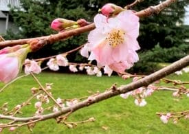 But we did have a cherry tree with one branch blossoming, right on Christmas Eve; seems symbolic, like beauty’s triumph over death, life over winter, or something like that. We need anything that gives us hope these days.