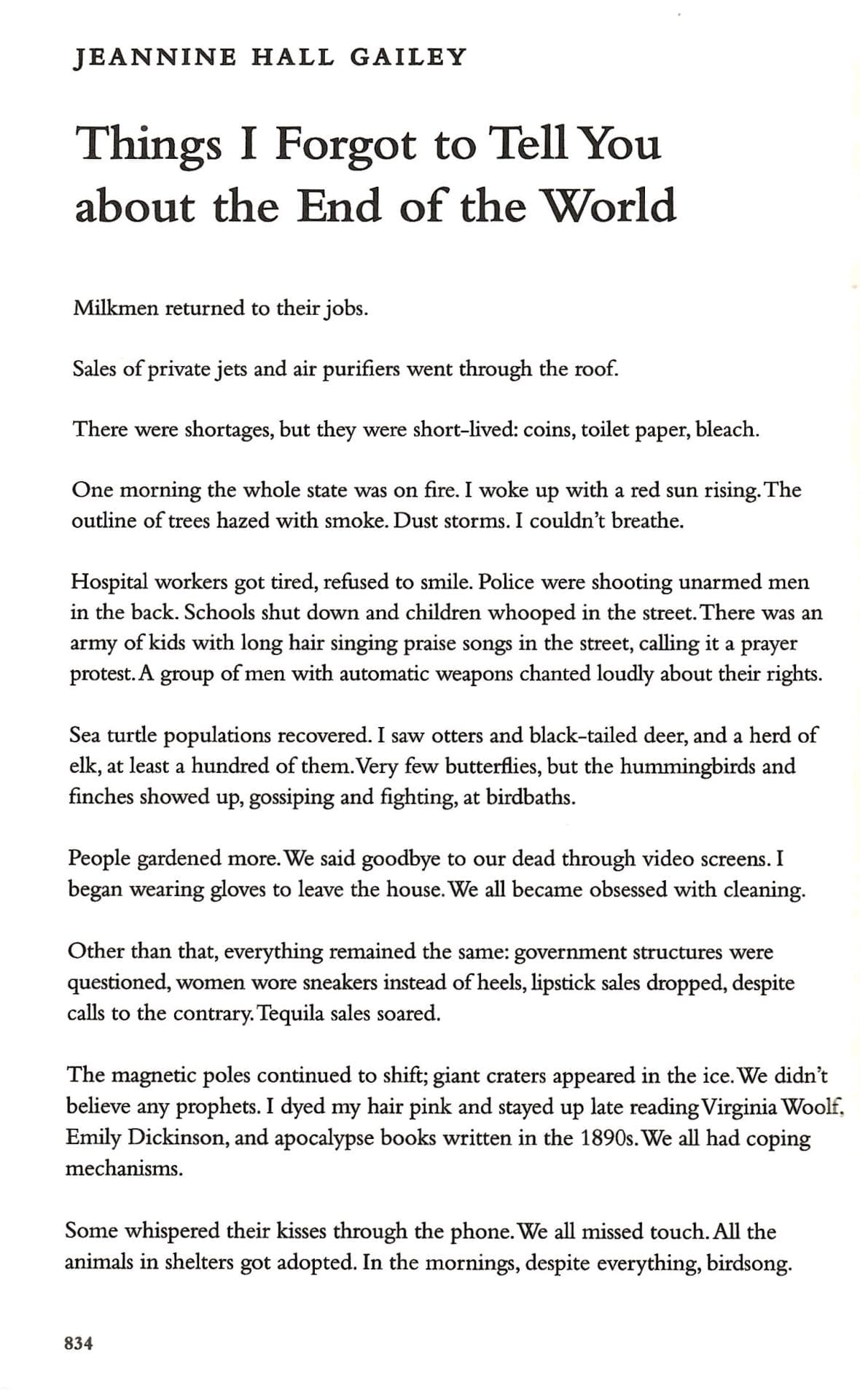 Thank you to the Massachusetts Review who included my poem “Things I Forgot to Tell You About the End of the World” in their end-of-the-year Climate Issue. I feel lucky to be in such a great issue, and the fact that it’s the closing poem of the issue.