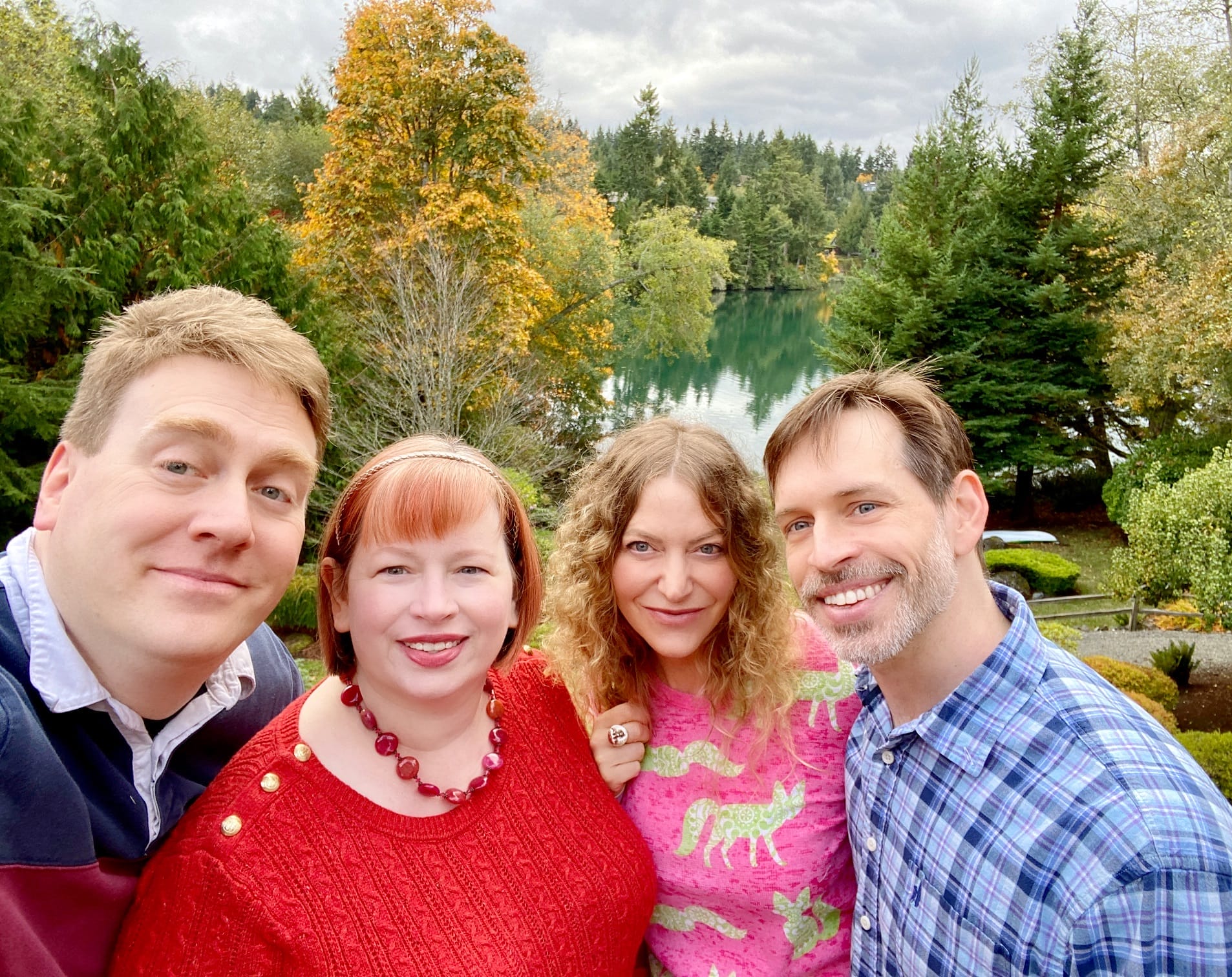 Then we traveled on to see my little brother Mike and sister-in-law Loree at the new house they’re renting on the Hood Canal, stopping along the way at a local park to unpack a thermos of hot cider and snap a pic – only to see a sea lion fighting with seagulls right behind us. We had a good visit, sat out on their beautiful deck overlooking the Hood Canal, had a little dinner, then made the long trek back to Woodinville. Once again, great to see actual family in human form, instead of just over the phone or over a screen.