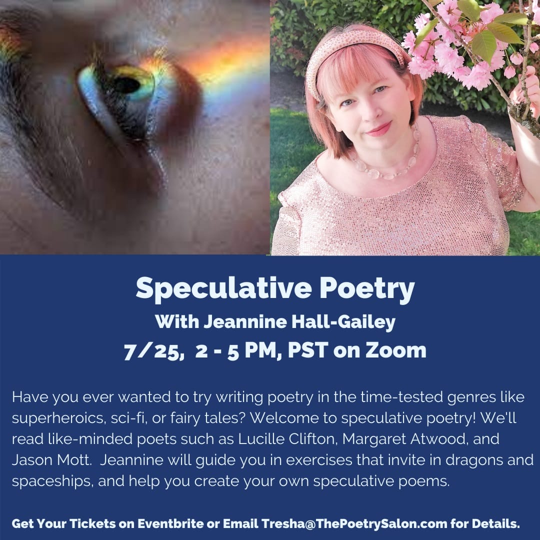 I have an upcoming speculative poetry class at 2 PM Pacific July 25th – only $50 – that you can sign up for on eventbrite.
