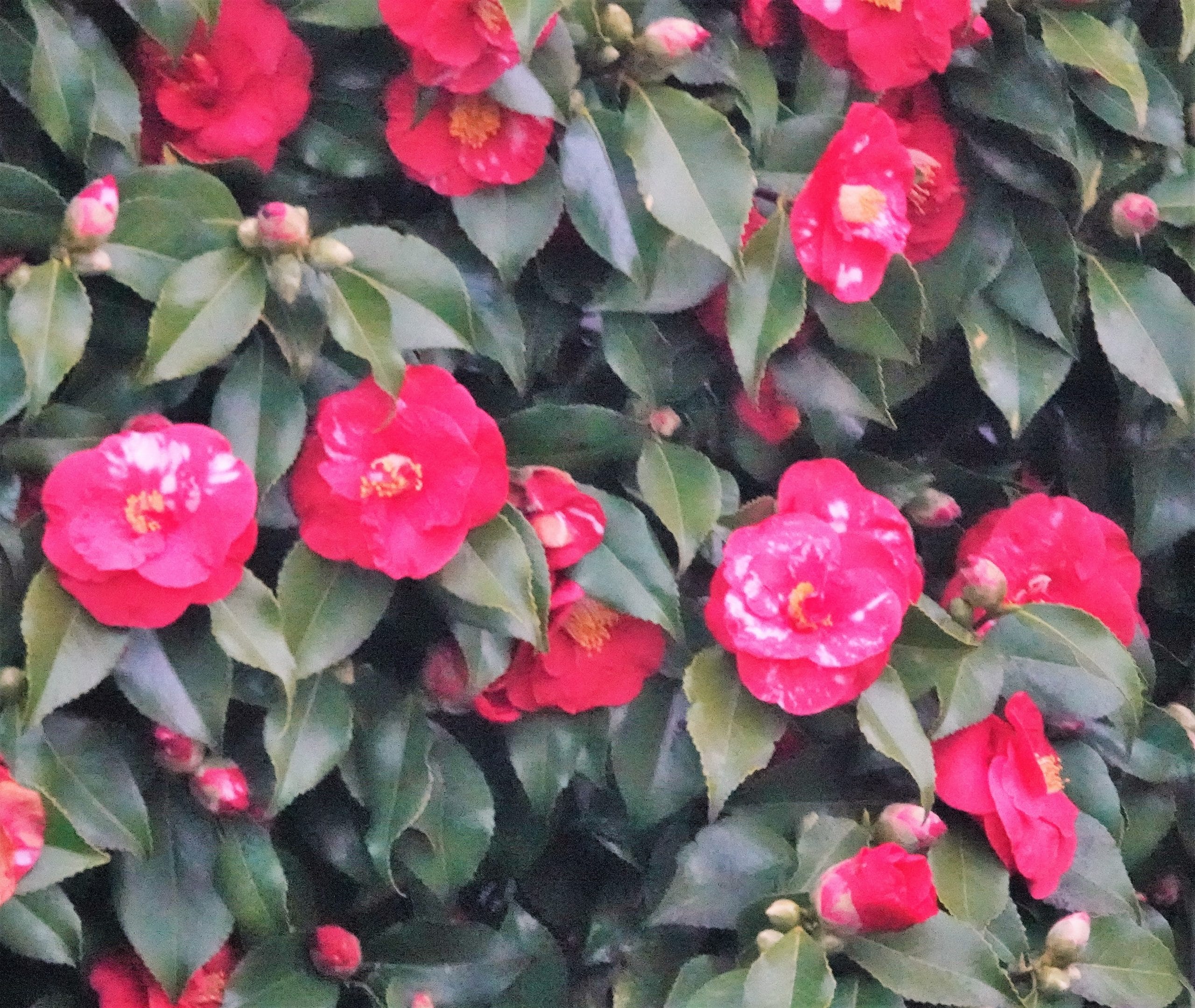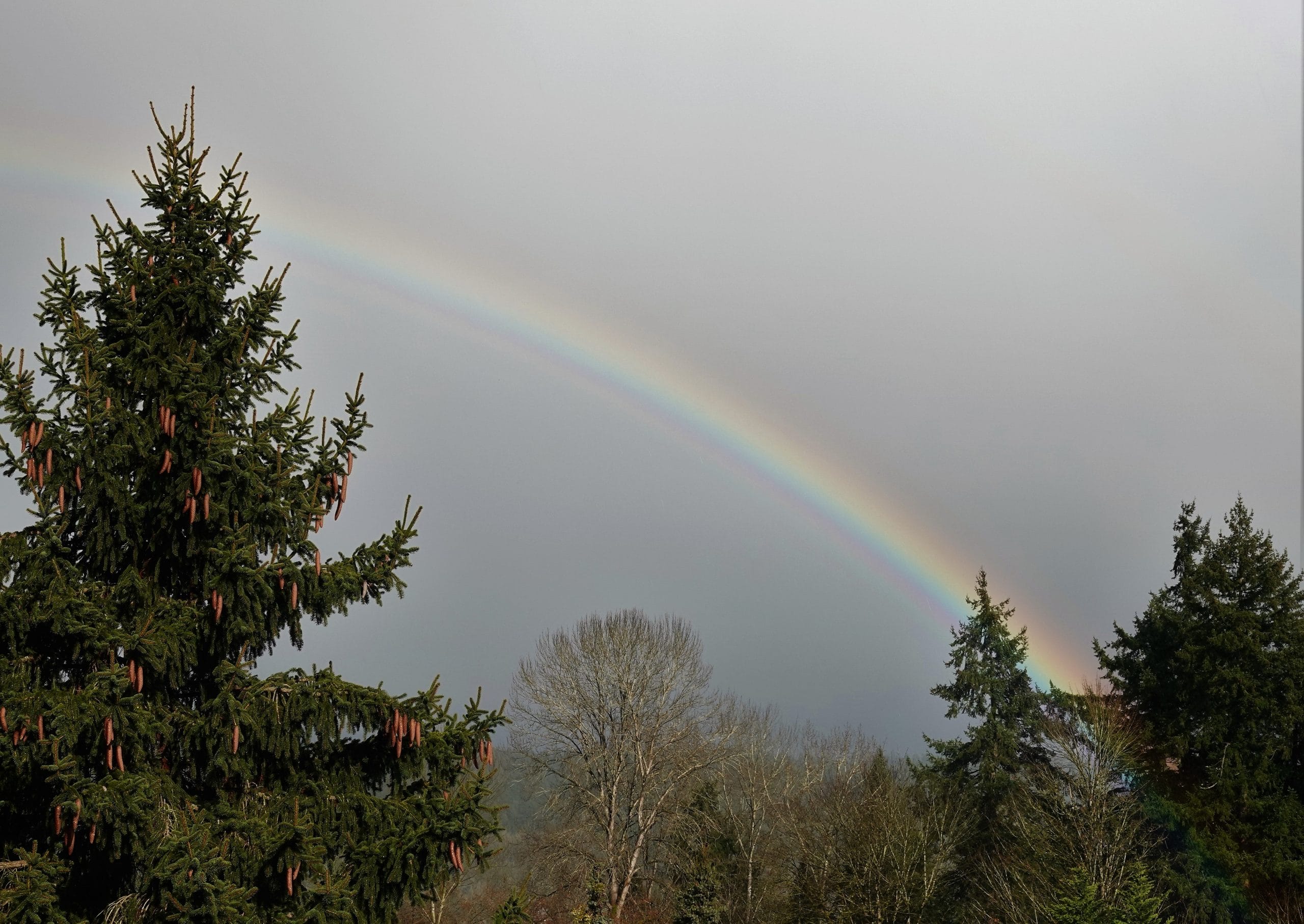 Spring on the East side of Seattle typically starts showing up mid-February, with daffodils, cherry and plum blossoms, and camellias, but this year, winter has kept its cold grip on us, and all the gardens – including mine – are showing barely a spark of life. So we went driving around yesterday looking for signs of spring. We didn’t find many – these pink rhododendrons by Lake Washington, a red swirl camellia, and the jonquils in my yard were the only signs spring might – MIGHT – be on its way. And we’ve had more than our share of rainbows, but mostly in between the gloom of hailstorms, thunderstorms, and just plain rain. We are ready for more light, and more than just metaphorically speaking.