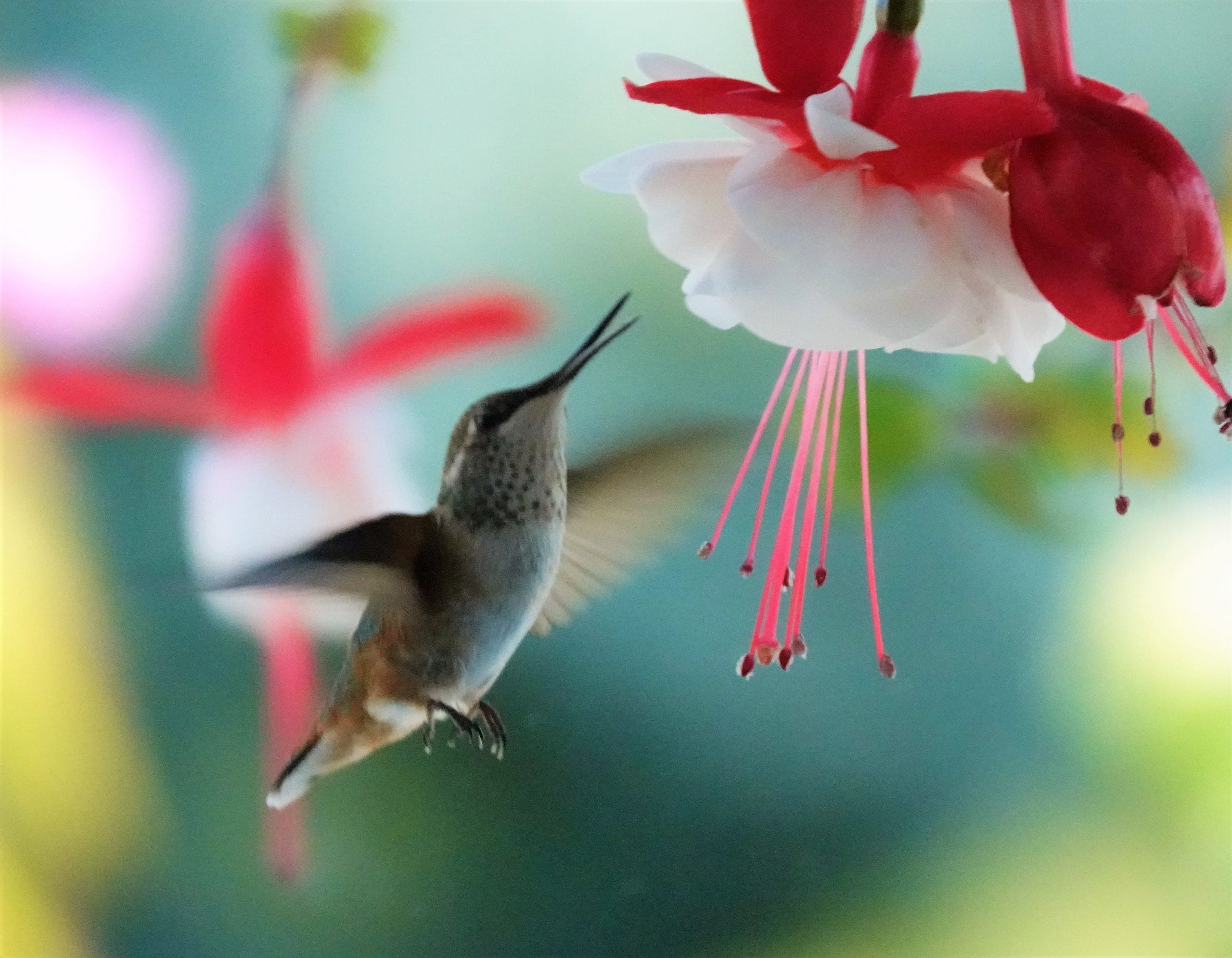 And here are two hummingbird pictures from this week. Hummingbirds continue to appear and drink from the feeder, and from the flowers. We run the sprinkler periodically for the birds and my garden; apparently the spray helps them stay cleaner from the smoke (or so I was told.) I have added houseplants to my room of solitude to help make up for the fact that I can’t go outside – an orchid, a snake plant, an aloe, a couple of ferns – all plants that coincidentally are supposed to help air quality. One thing about things you are able to control – I can’t stop over 600,000 acres burning, but I can plant a tree in my yard (when this is over and it’s safe outside, naturally.) I can’t leave the “clean room” in my house (without suffering more than the nosebleeds, headaches, and cough I’m currently having) but I can try to connect with others online, and think about how to improve the quality of the air in the house (air purifiers, plants, dusting, getting rid and loose papers, avoiding burning anything (food, candles, etc.) I’ve been writing poems, too, when I can, though I’m not sleeping well with all the smoke so they may be mildly incoherent. I’m really hoping a publisher sends me some good news soon about one of my manuscripts. It would be nice to have some good news to share in this year of bad news, wouldn’t it?