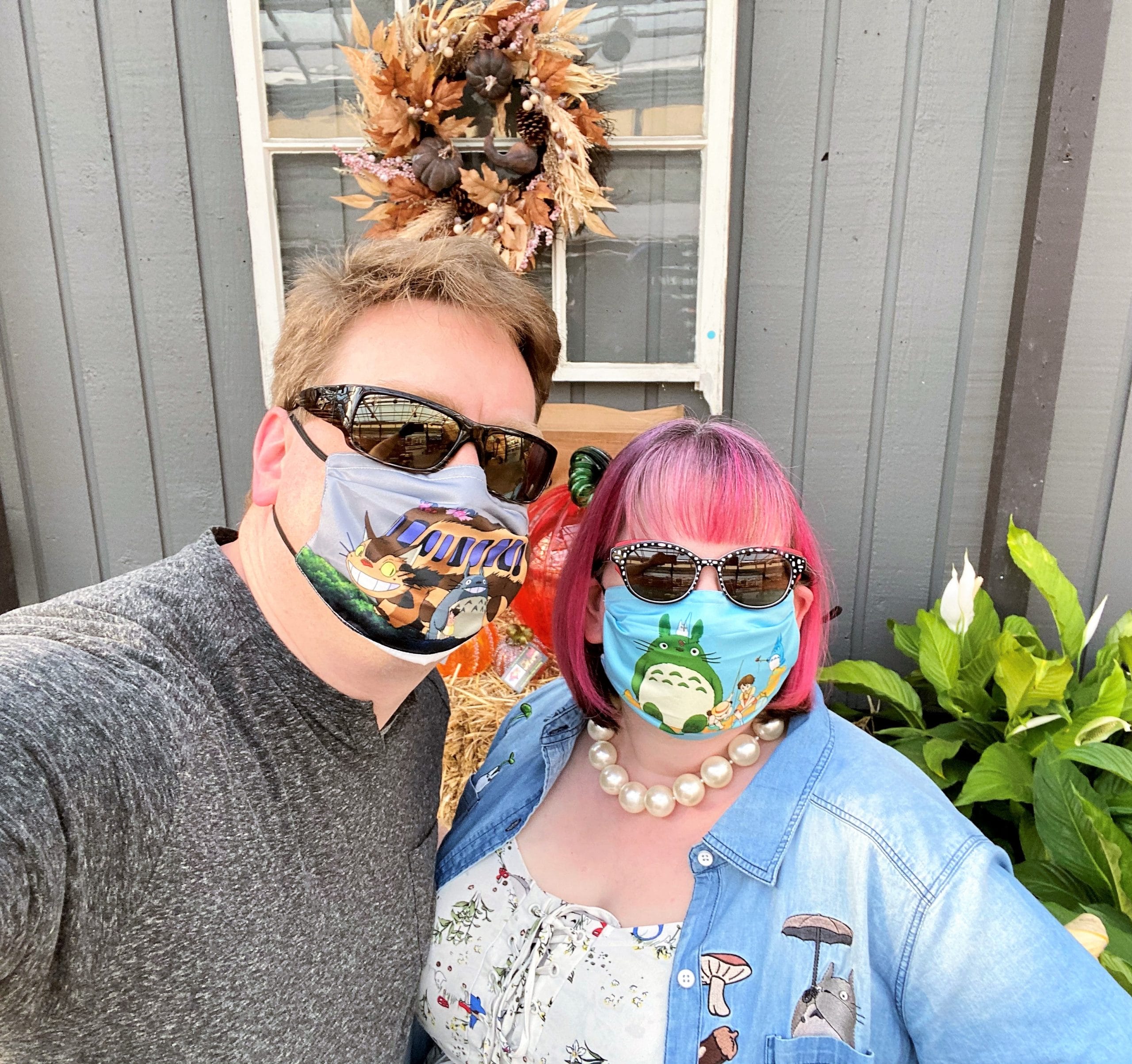 - Glenn and I in our Totoro-themed masks at Molbaks