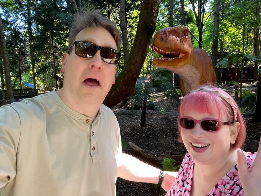 My birthday has come and gone, and May has begun with moody weather (sunshine, rain, sunshine again, and that’s just the morning). We had a pretty small celebration, just went to Willows Fireside Lounge for dessert and cocktails and to the Woodland Park Zoo for the dinosaur adventure (plus snow leopard cubs!) I loved the educational interactive bits for kids—they could dig for fossils, or experiment with robot servos to see how the dinosaurs move. Robotics and paleontology – sounds like a great combination! Some of the dinosaurs move uncannily when you get close to them, letting out sounds that might conceivably be dinosaur like, and some had feathers and fur and color.