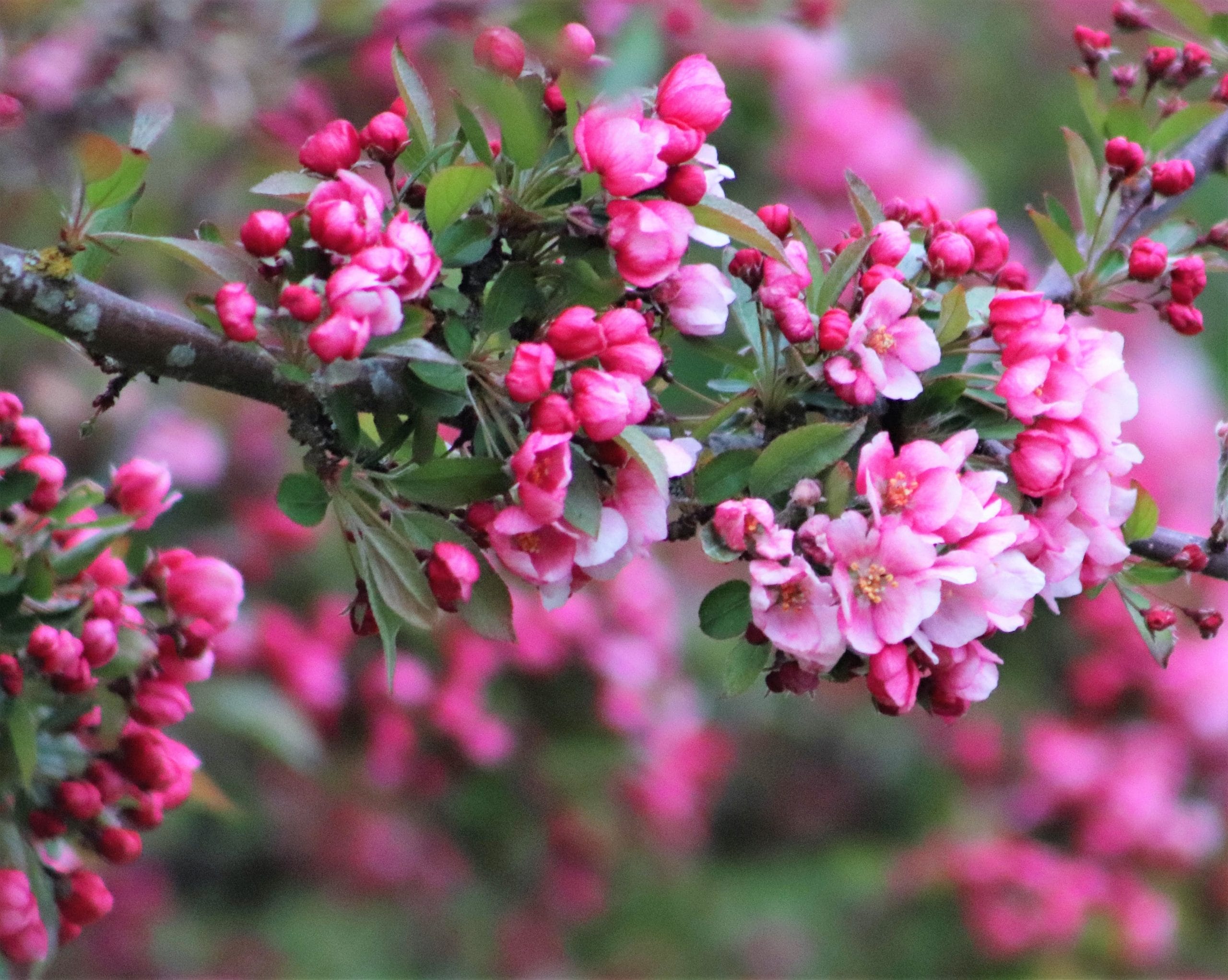 It’s mid-April, and the last of the cherry blossoms, my favorite, the pink candy-tuft type, are blooming. Yesterday was gloomy and today we’ve having rain, which somehow feels appropriate to what is going on in the world. I’m trying to get outside when I can, but I have to avoid other people even more than most people with my health issues, so I’ve been haunting weird places – abandoned parking lots, mostly – to get my flower fix.