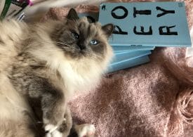 I always said it would be the apocalypse before I got into Poetry Magazine, so it seems appropriate that yesterday by special delivery in my home during lockdown I received my contributor’s copies of Poetry Magazine, with two of my poems in it, alongside poems by illustrious stars like Ocean Vuong. My kitten Sylvia just would not stop cuddling with Poetry! Which makes sense, since her namesake poet was in there several times.
