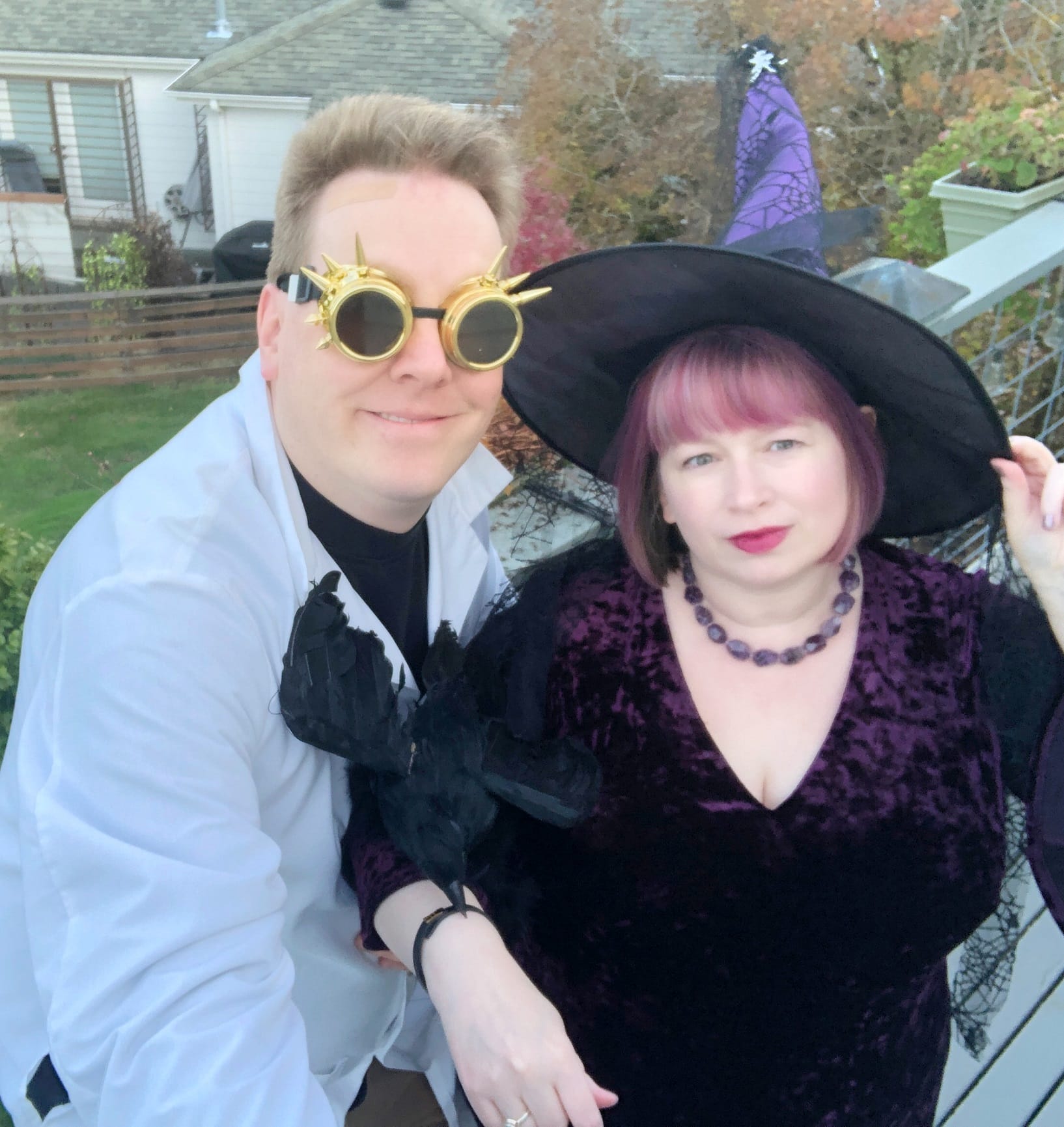 Are you a fan of Halloween? I like dressing up (this year I’m the Violet Witch with raven and Glenn is going as a Steampunk chemist) and seeing all the kids in their costumes and handing out candy. I like watching Buffy the Vampire Slayer, It’s the Great Pumpkin, Charlie Brown, and the greatest horror movie of all time, Killer Shrews (MST3K edition, of course). I like making pumpkin bread and some kind of soup for Halloween dinner, with lots of hot cider