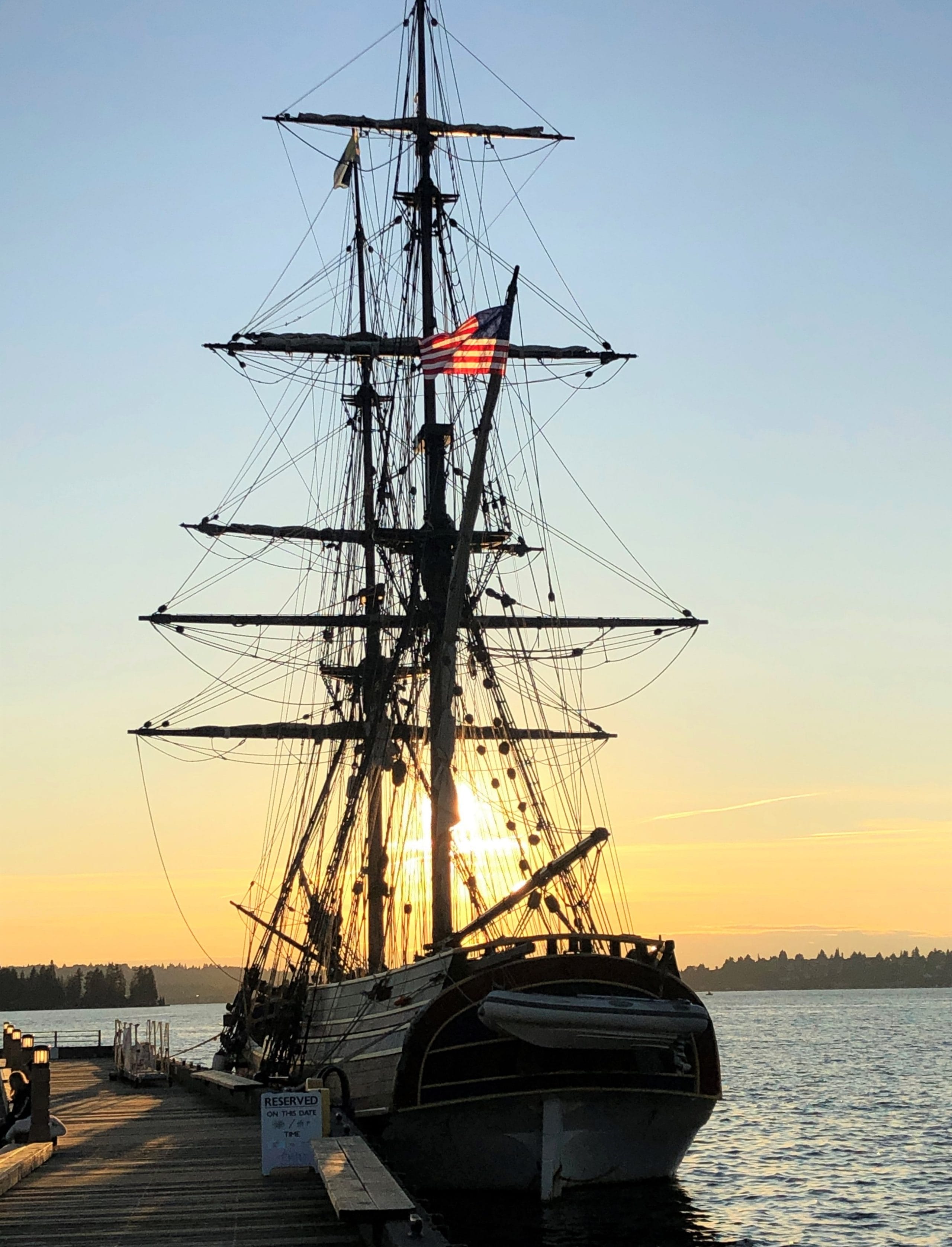 Going to doctors and dentists took up a lot of my time the last week, but at least on the way home from one appointment I got to see a Tall Ship at the Kirkland marina at sunset, which is pretty great to see at any time.