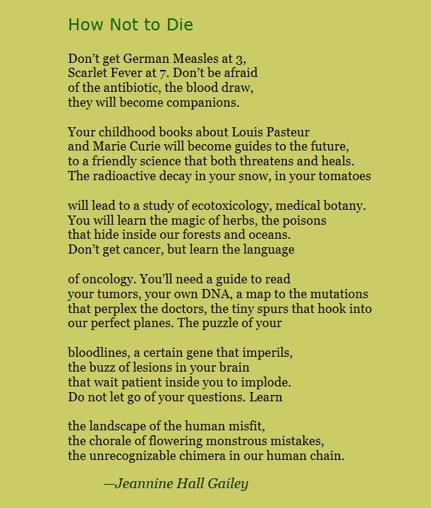 Jeannine Hall Gailey served as the second Poet Laureate of Redmond, Washington and the author of Becoming the Villainess, She Returns to the Floating World, Unexplained Fevers, The Robot Scientist’s Daughter, and winner of the Moon City Press Book Prize and SFPA’s Elgin Award, Field Guide to the End of the World. Her latest, Flare, Corona from BOA Editions, was a finalist for the Washington State Book Award. She’s also the author of PR for Poets, a Guidebook to Publicity and Marketing. Her work has been featured on NPR’s The Writer’s Almanac, Verse Daily and The Year’s Best Fantasy and Horror. Her poems have appeared in The American Poetry Review, Poetry, and JAMA.