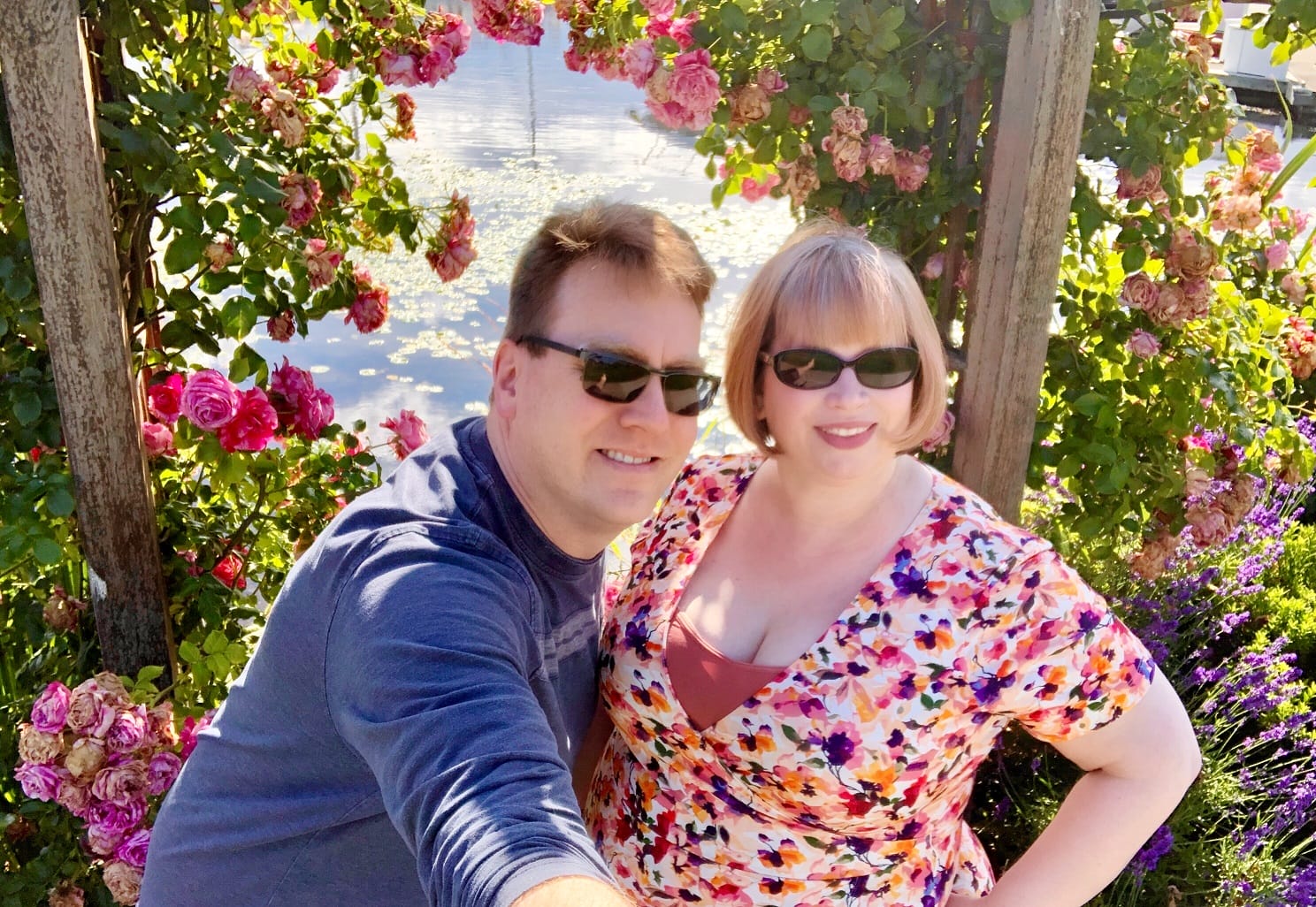 So, we have to remember to celebrate the beauty, the kindness, the love, and the poetry in our lives. Here’s a little picture of Glenn and I twenty five years ago. They threw rose petals instead of rice. I’ve been growing roses every since.