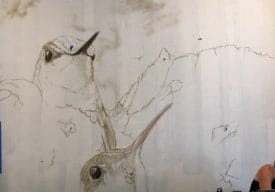 Here are a few pieces I thought were pretty interesting. “The Sodden Hearts” by Syd Bee (very Seattle appropriate, I thought) and Kari Lee Alexander’s “The Dreams We Consume in the Depths of Our Hearts.” And an artist was in the process of covering one wall with a very cool hummingbird mural. Worth checking out!