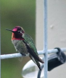 This is a hummingbird perched by our new plantings of sunflowers. I am hoping to attract some goldfinches. I even planted a “Cherry sunflower” that is supposedly pink! I guess we’ll see.