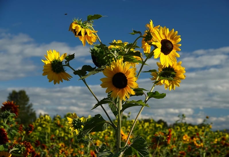 The last of our flowers – dahlias, roses, zinnias, and sunflowers – are starting to fade, and our farmer’s markets are full of corn and tomatoes, waiting for the first pumpkins and apples to come in. Here are a few pictures of September at the JB Family Growers Lavender and Flower Farm down the street.